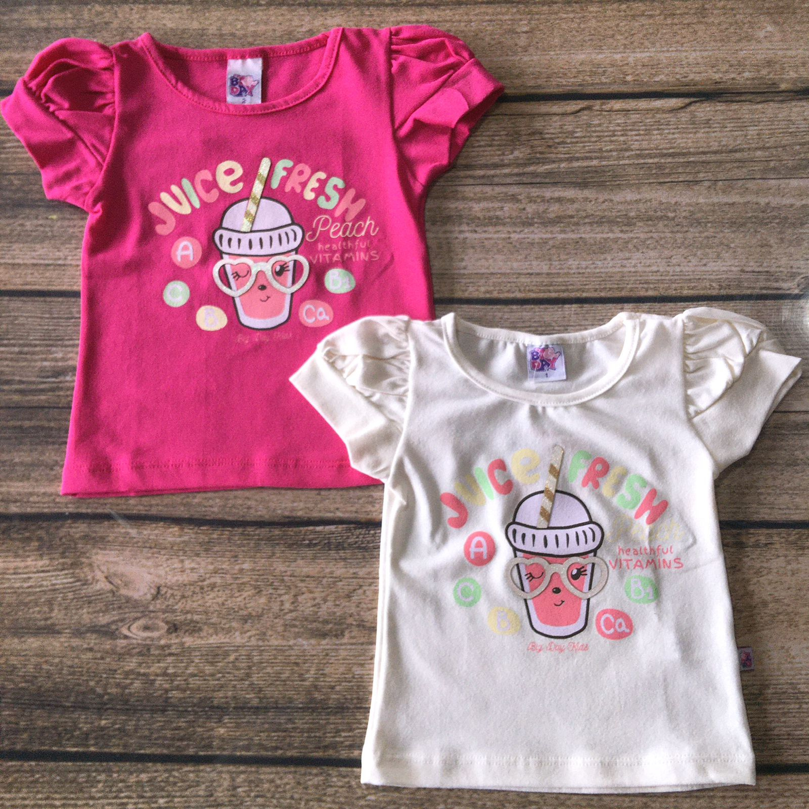 Blusa Infantil Feminina Big Day, blusa em meia malha maga curta de princesa, estampa frontal de copinho bem divertido de vitamina com detalhes em Glitter que deixa o look ainda mais Charmoso, onde sua Kidszinho vai arrasar em qualquer ocasião.