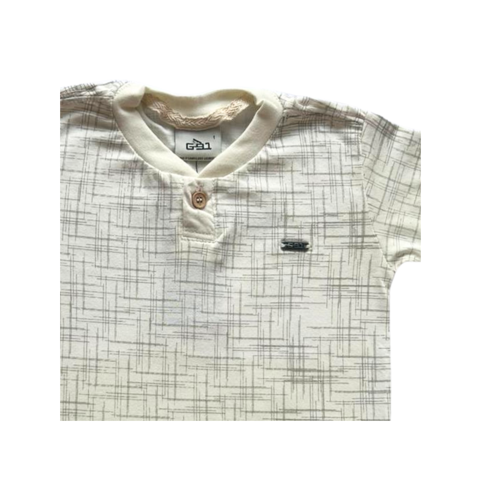 Camiseta manga curta, possui modelagem tradicional, estampa rotativa em risquinhos, possui aplique da marca na altura do peito, cotém gola redonda em ribana com fechamento de botões que deixa o look ainda mais descolado, onde seu Kidszinho vai arrasar em qualquer ocasião.
