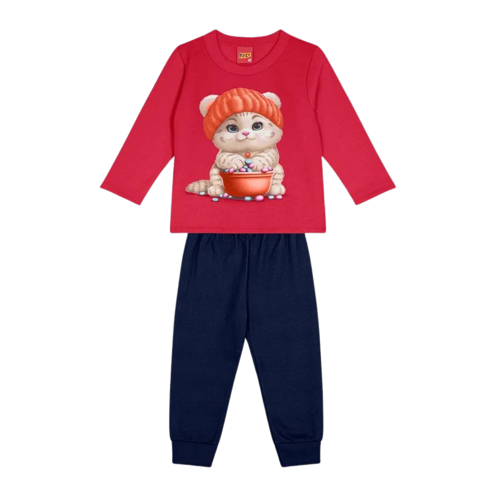 É composto por casaco e Calça em moletom peluciado, Apresenta uma estampa localizada de gatinho, adicionando um toque de fofura ao visual, e decote redondo com acabamento em debrum, proporcionando um ajuste confortável. Suas mangas longas garantem ainda mais aconchego. A calça estampa lisa, possui um elástico rebatido na cintura para facilitar o vestir e garantir um ajuste perfeito, e barra em molde, adicionando um toque moderno ao conjunto.