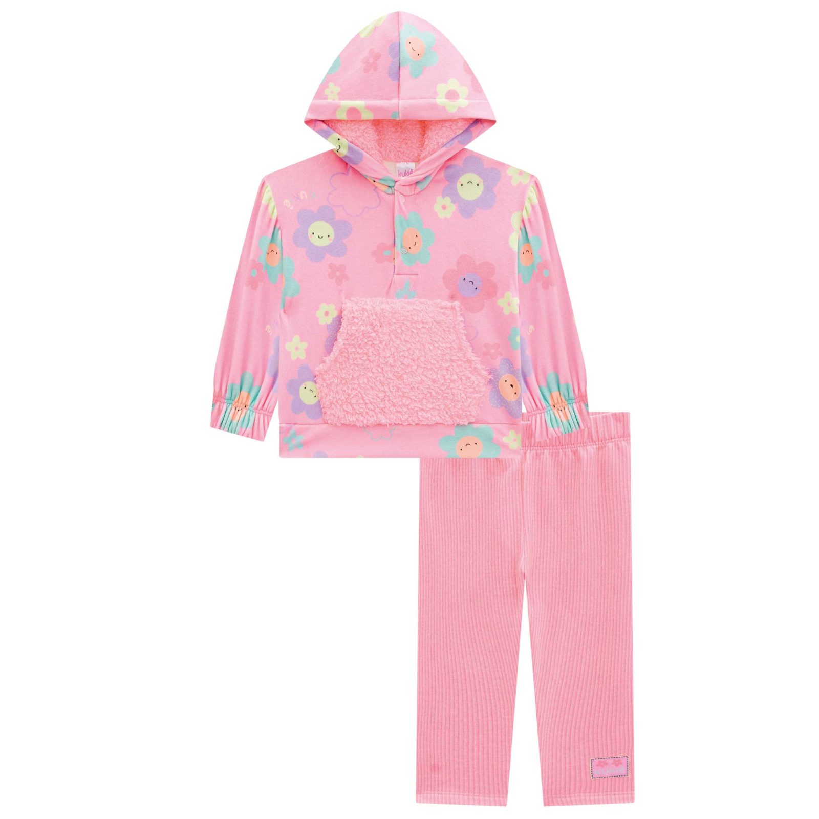 Blusão em fleece luxo, manga longa com punho com elástico, com estampa rotativa de florzinhas super fofos, possui fechamento de botões de pressão na parte frontal, bolso canguru em pelinhos na parte da frente e cotém capuz forrado com pelinhos. A legging em termoskin, possui estampa lisa e elástico confortável no cós para mellhor ajuste,e aplique da marca na barra que deixa ainda mais estilosa. sua Kidszinho vai estar prontinha para arrasar em qualquer ocasião, além de estar linda.