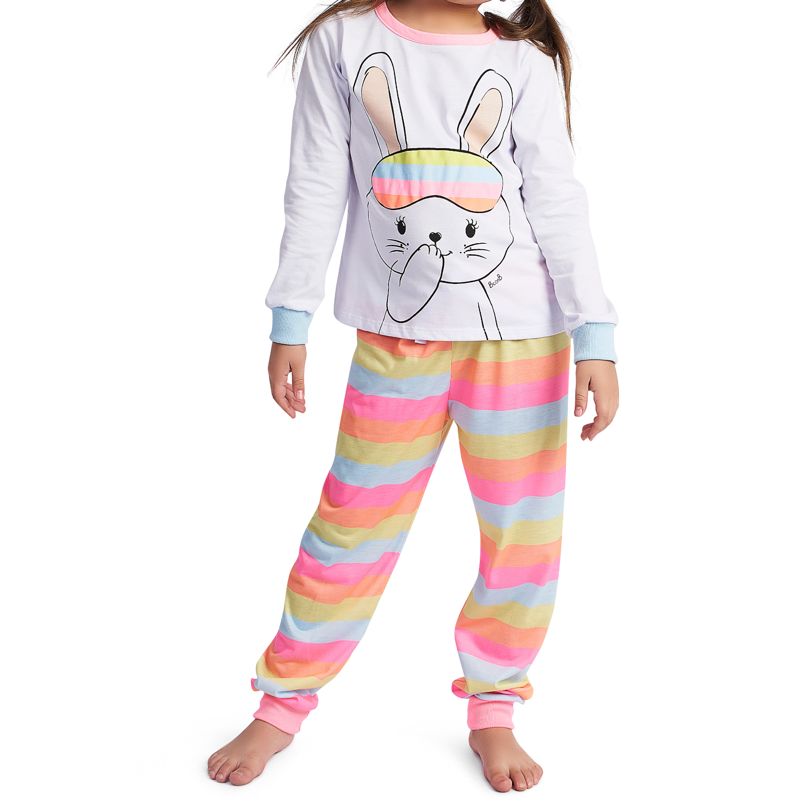 Blusa e Calça em meia malha. Um modelo quentinho, leve e confortável, ideal para sua Kidszinho usar nos seus dias de sono. Blusa Infantil manga longa possui modelagem soltinha estampa frontal de coelhinho com detalhe em alto relevo de tapa olho em cores neon, sua Kidszinho vai arrasar. A Calça possui estampa rotativa listrada em neon, possuiu elástico confortável no cós com cordão fake. Um conjunto que não pode ficar de fora dos looks de sua Kidszinho.