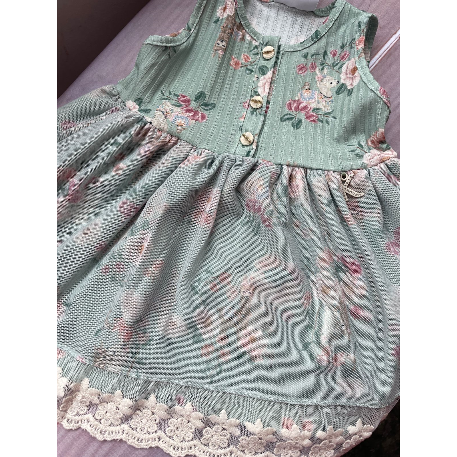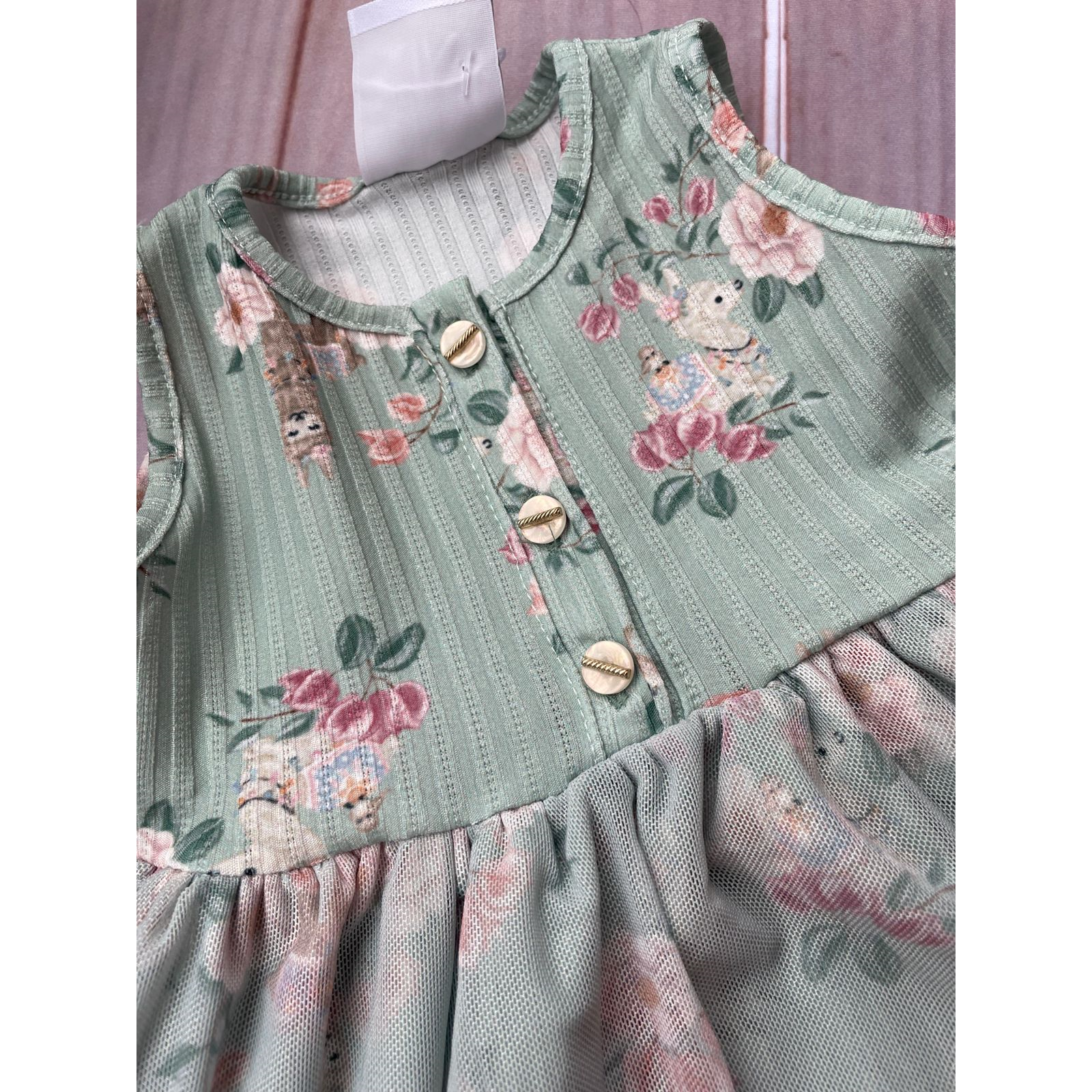 Com um estilo infantil e descontraído, o vestido apresenta uma gola redonda que adiciona um toque de charme. O vestido conta com uma saia de tule e barra do vestido bordado. É perfeito para passeios no parque, festas de aniversário ou simplesmente para um dia divertido em casa. A versatilidade do modelo permite que ele seja facilmente combinado com sandálias ou tênis, criando looks adoráveis e práticos.